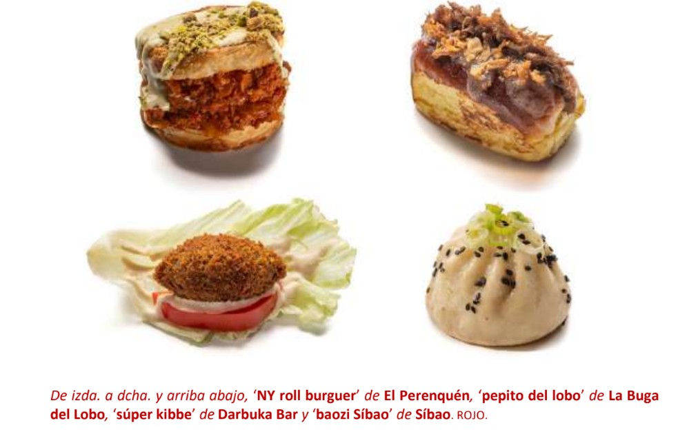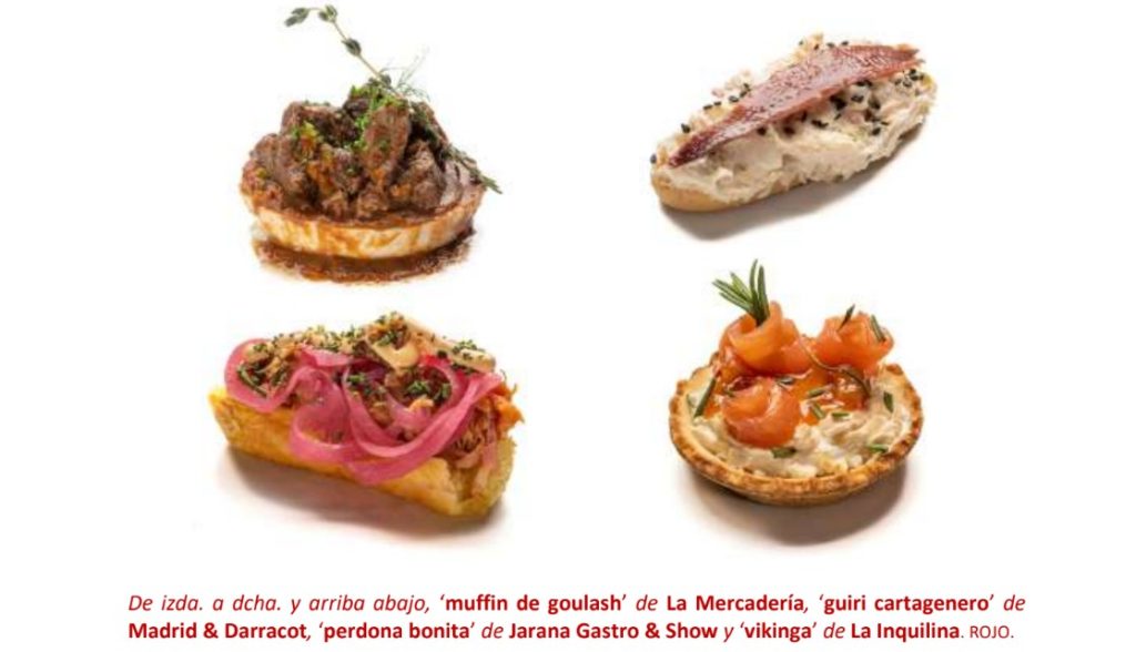 Además, el ‘pelotazo’ de Portomarín (Valencia, 8), albondigón de carne gallega con calabaza especiada, sobre reducción de Mencía y canela, coronado con pipas tostadas; ‘hornazo artesano’ de El Colmado de Lavapiés (Mercado de San Fernando), empanada salmantina de lomo y chorizo curado de cerdo, aliñados con mimo; ‘sabor a Caí’ de Latazo (Mercado de Antón Martín), croqueta de camarón gaditano con garum… La ‘empanada expresionista’ de Hartem Bar (Duque de Rivas, 5), con cecina de León, queso de cabra y mermelada de pimientos. Os gustarán, tanto como la ‘Gilda canalla’ de Lonja Agroecológica (Mercado de San Fernando), con pimiento asado, anchoa del Cantábrico, piparras, tomate seco y aceituna gorda sobre pan crujiente con pipeta de vermut rojo. Sin olvidar el ‘bocatín de la Plaza Menor’ de El Rincón Guay (Embajadores, 41), de calamares con pimientos asados y una aceituna sevillana.