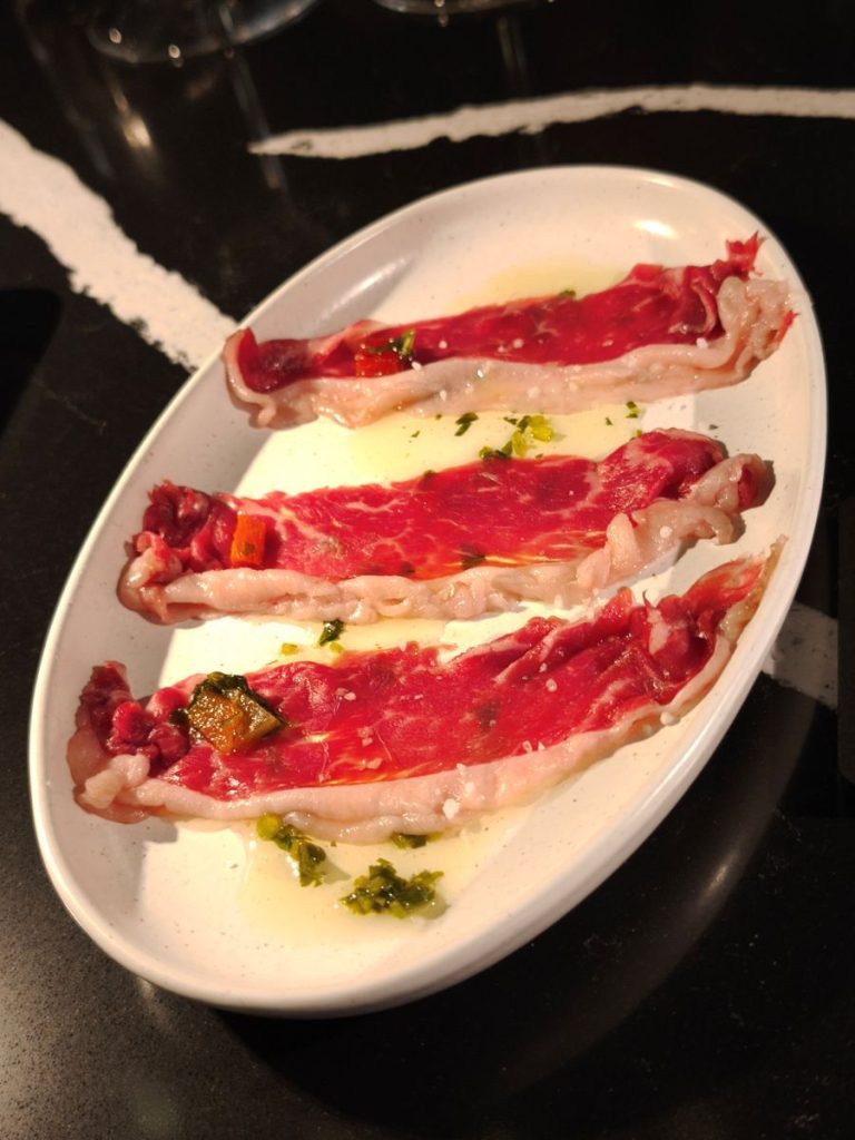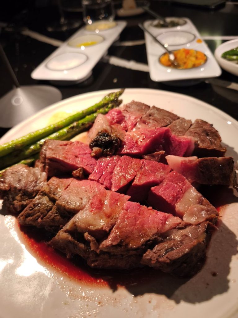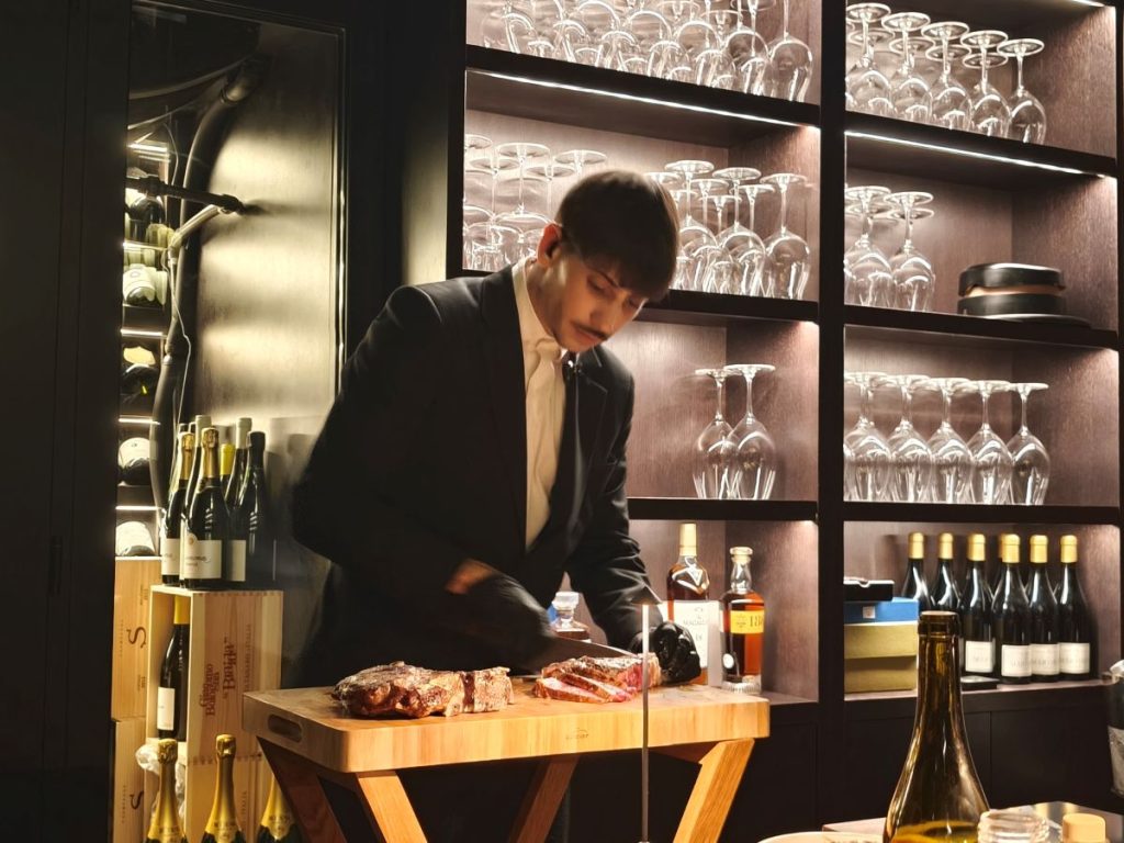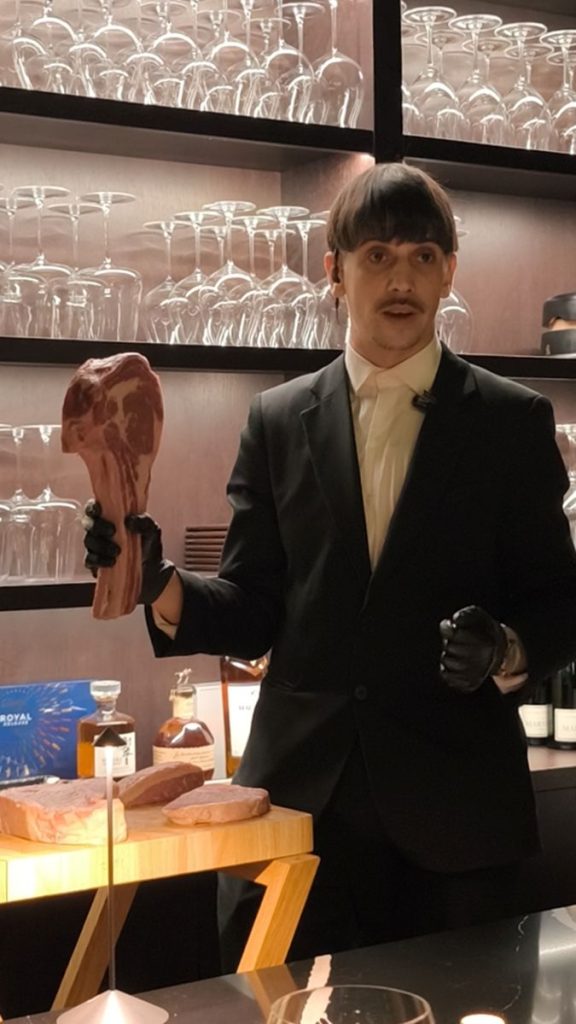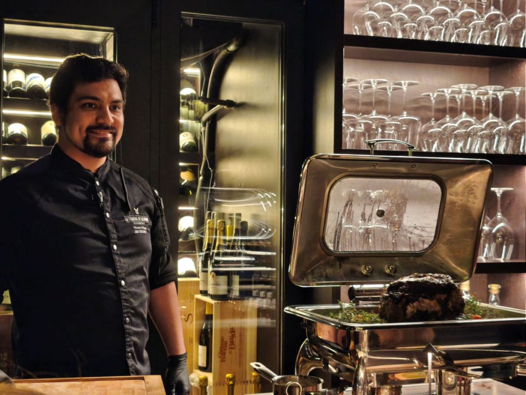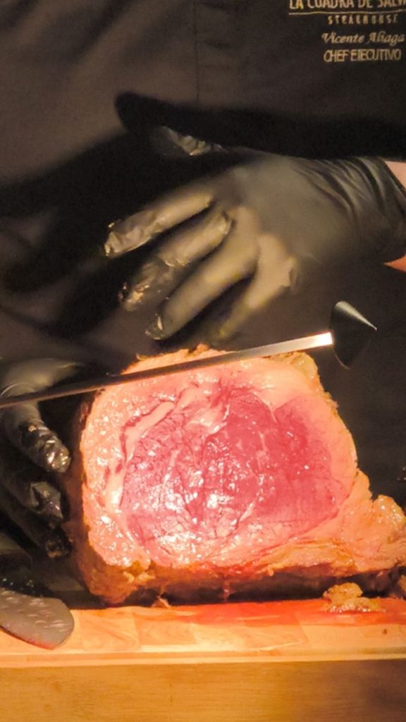 Como director de sala, Samuel Lisci nos ha ido contando los pormenores y raíces de cada plato, así como del vino y los cócteles que hemos degustado. Nos decía que el secreto de La Cuadra de Salvador son los cortes USDA Prime de excelencia. «Nuestra propuesta gastronómica se centra en cortes de carne americana USDA Prime de la más alta calidad, preparados con precisión y pasión. Cada plato está pensado para ofrecer sabor, ternura y jugosidad excepcionales» nos detallaba Samuel, mientras continuaba nuestra experiencia en La Cuadra de Salvador, en un ambiente elegante y cálido, en el que se ha cuidado hasta el más mínimo detalle. Los cubiertos, la cuchillería en manos de estos expertos, la mesa de mármol negro, a la vista, las lámparas de cuarzos que transmiten armonía…