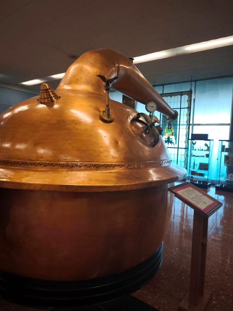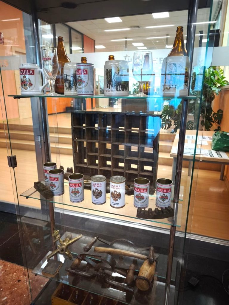 Entre otras curiosidades, hemos podido contemplar la enorme caldera de cobre fabricada en Alemania, que perteneció a la Sala de Cocción de S.A. El Águila, instalada en la antigua fábrica de Madrid en 1903. Puedes verla en la primera fotografía del carrusel. Fue modificada en 1969, para trabajar como concentrador en la Planta Transformadora de Lúpulo. En 1992 fue cedida a la Exposición Universal de Sevilla (a la que asistimos, por cierto), para exponerla en el Pabellón de los Descubrimientos (que visitamos en su día), siendo uno de los pocos objetos no destruidos en el incendio acaecido, quedando considerablemente deteriorada, por lo que fue restaurada con posterioridad.