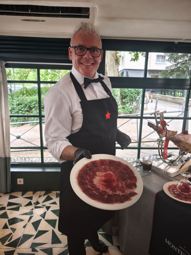 ¿Cómo hacer un picnic especial? ¿Qué te llevarías a un picnic? Ibéricos Montellano nos ha invitado a conocer su planazo de picnic ibérico para este verano, en la terraza del Restaurante José Luis (C/Rafael Salgado, 11, Madrid). Hemos disfrutado de un exclusivo evento gastro, donde hemos degustado todos los productos elegidos para el pack de picnic, cortados a cuchillo, así como un delicioso y refrescante menú, que ha incluido gazpacho, tortilla de patatas, presa ibérica (traída expresamente para la ocasión desde su finca salmantina), y una deliciosa tarta de limón. Una cita en compañía de Carmen Hernández, la matriarca, y de Carmen Curto, su hija, dos excelentes anfitrionas.
