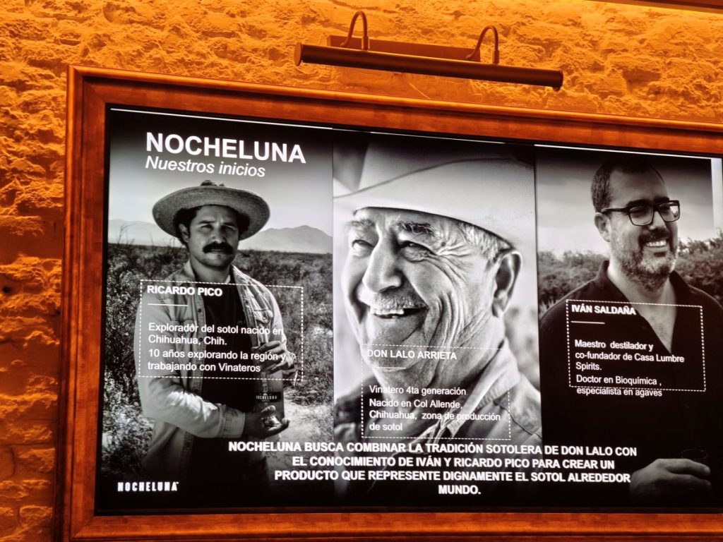 Mientras que el tequila proviene principalmente de Jalisco (oeste de México) y el mezcal de Oaxaca (sur de México), el sotol está profundamente ligado a los paisajes desérticos e indómitos de Chihuahua, donde crece silvestre la planta Dasylirion, conocida como “cuchara del desierto”. Los pueblos indígenas de la región han producido sotol durante más de 800 años, mucho antes de la llegada de los métodos europeos de destilación. Todo esto y mucho más nos descubría el experto sotolero, que nos ha acompañado en este evento, literalmente sin parar. ¡Cuánta pasión!