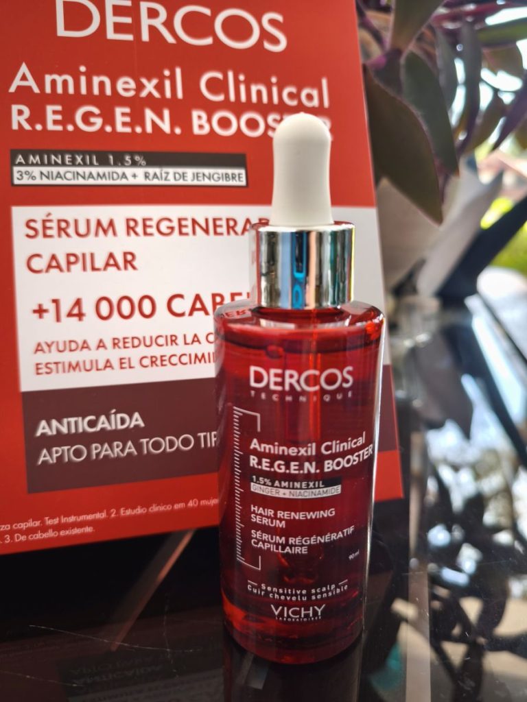 El compromiso tangible de Laboratorios Vichy para alargar el ciclo de vida del cabello. El resultado del compromiso de DERCOS para alargar el ciclo de vida del cabello y reducir la caída, es el lanzamiento de Aminexil Clinical R.E.G.E.N. Booster. Un sérum formulado para activar la regeneración capilar dentro y fuera del folículo. Su fórmula con Aminexil al 1.5%, junto a un 3% de niacinamida y raíz de jengibre ayuda al cabello a alcanzar su máximo potencial, consiguiendo +14.000 nuevos cabellos en 12 semanas[3].