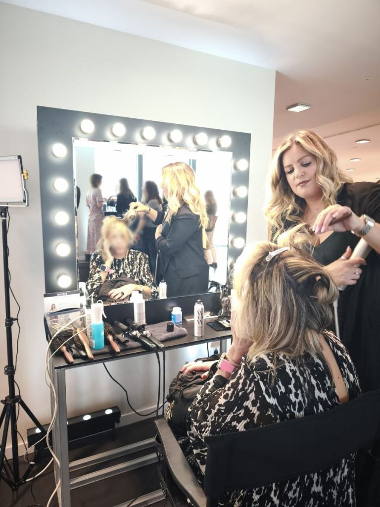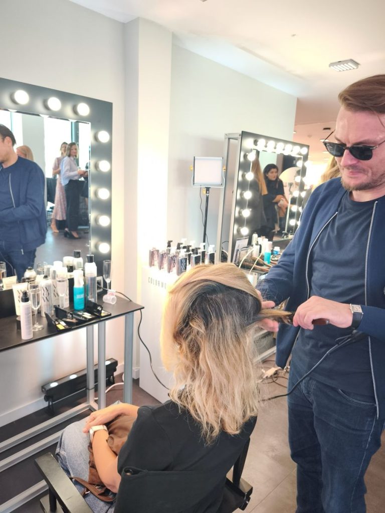 En esta presentación especial, Leon Downing ha estado acompañado por la estilista británica Mel Pellegrini y el peluquero español Sergio Álvarez González. Al finalizar su alocución, los tres se han puesto manos a la obra, para que muchas de las asistentes probaran en su propia cabellera los acabados y efectos de algunos de los productos más icónicos de Color WOW.